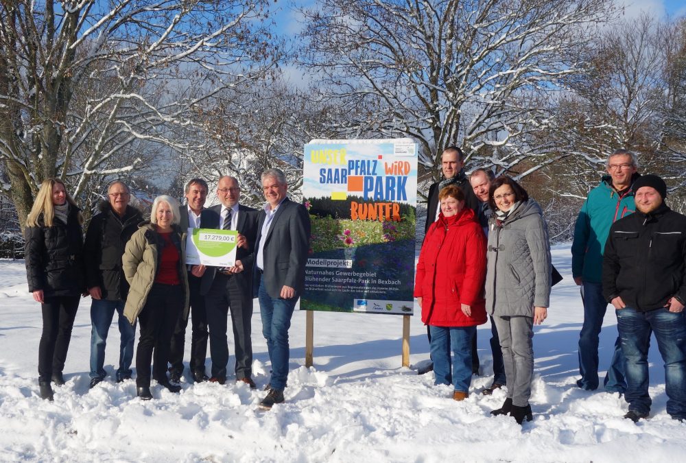 Der Staatssekretär für Umwelt und Verbraucherschutz Roland Krämer übergab im Saarpfalz-Park Bexbach einen Förderscheck von rund 17.000 Euro für die Anlage von Blühwiesen. Nach dem Motto „Mensch in Form – Unternehmen in Form“ will man im Saarpfalz-Park auch in 2019 darauf setzen, dass sich die Mitarbeiter aller Unternehmen am Standort weiter wohl fühlen und gleichzeitig etwas für die Natur tun.