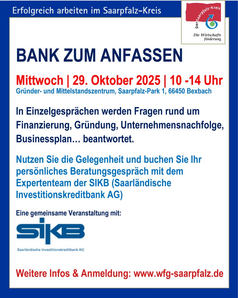 In Einzelgesprächen werden Fragen rund um Finanzierung, Gründung, Unternehmensnachfolge Businessplan beantwortet. Die SIKB gibt Tipps und Tricks an die Hand