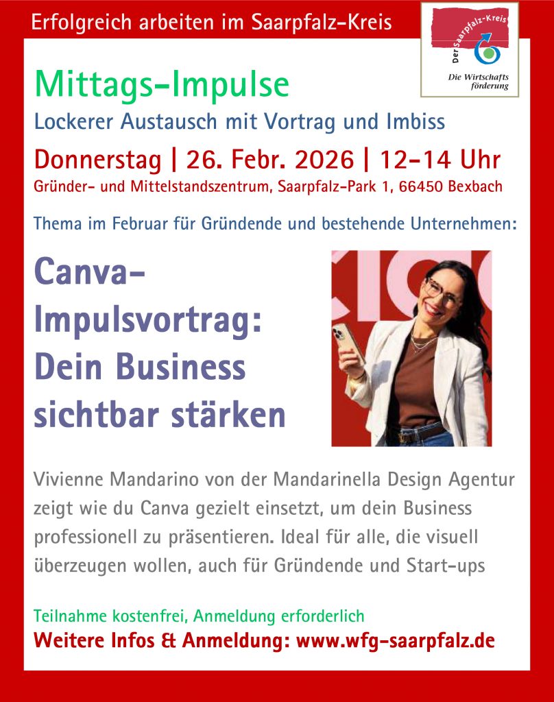 Veranstaltungsort: Gründer- und Mittelstandszentrum, EG, Saarpfalz-Park 1, 66450 Bexbach